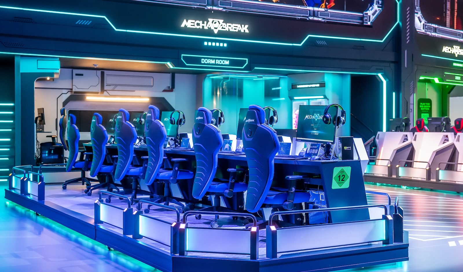 EIDETIC designed the Mecha BREAK booth as a cybernetic hangar to reflect the game’s sci-fi and mecha-shooter identity. With custom weapon props, intricate motifs, and thematic decorations, the entire booth embodied the world of mecha. A full-scale cockpit simulator offered participants an immersive experience of piloting their own mech, earning praise as “one of the most impressive booths at Gamescom.” To highlight the game’s strategic PvPvE battles, a dedicated arena was created, delivering thrilling live matches. The front-facing LED screens broadcasted the action in real time, drawing in large crowds of spectators.
